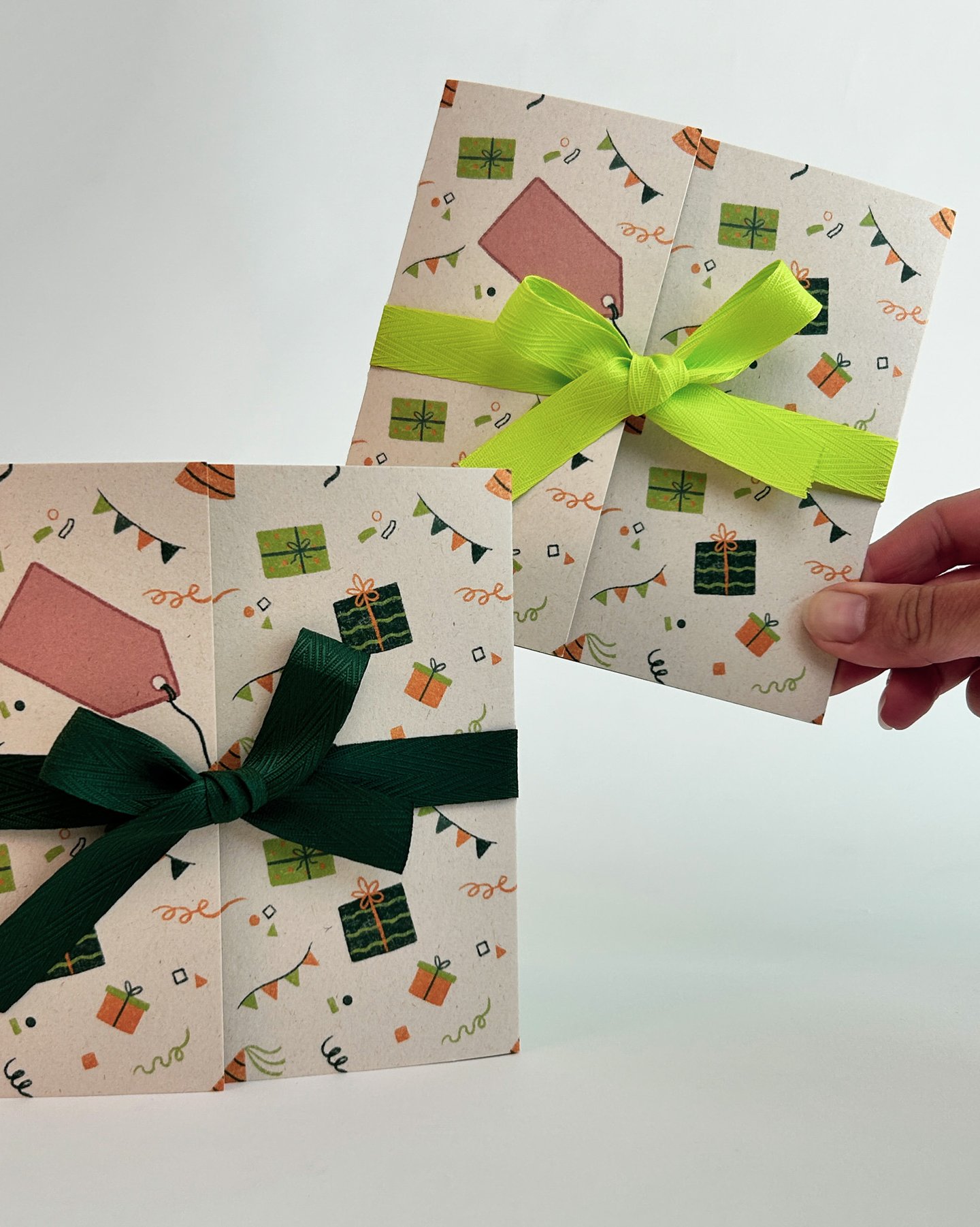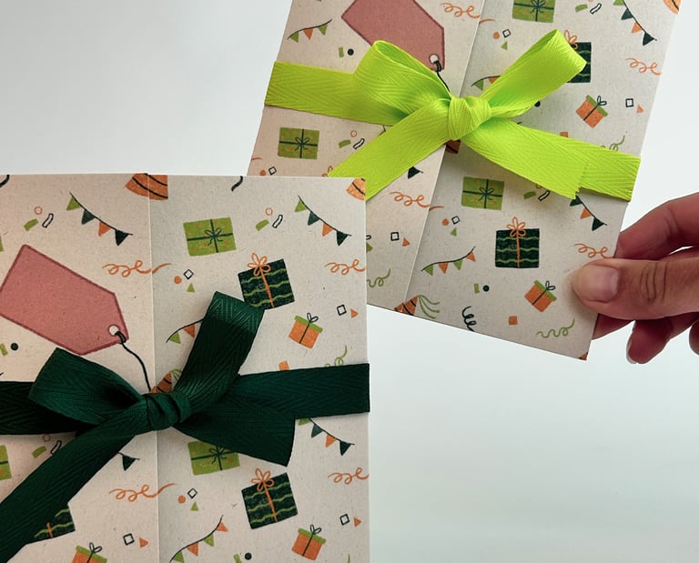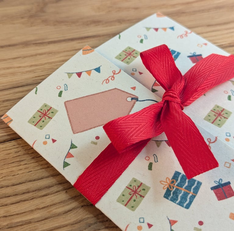 De vrolijke buitenkant met strik maakt elk Kadoentje een feestje om uit te pakken.